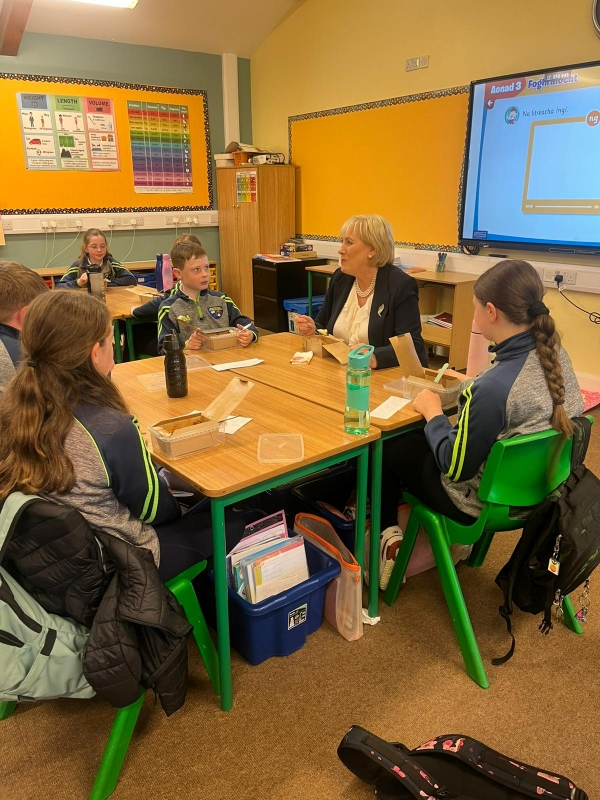 On Tuesday 30th September we welcomed Heather Humphreys to our school. She visited all the the pupils and told everyone about her hopes and dreams if she comes President of Ireland. It was a lovely experience as the pupils also got to share their hot school meals with her. Thank you to Wild Thyme for sending a dinner for Heather. The student council thanked Heather for all her support within our community in Aghabog.